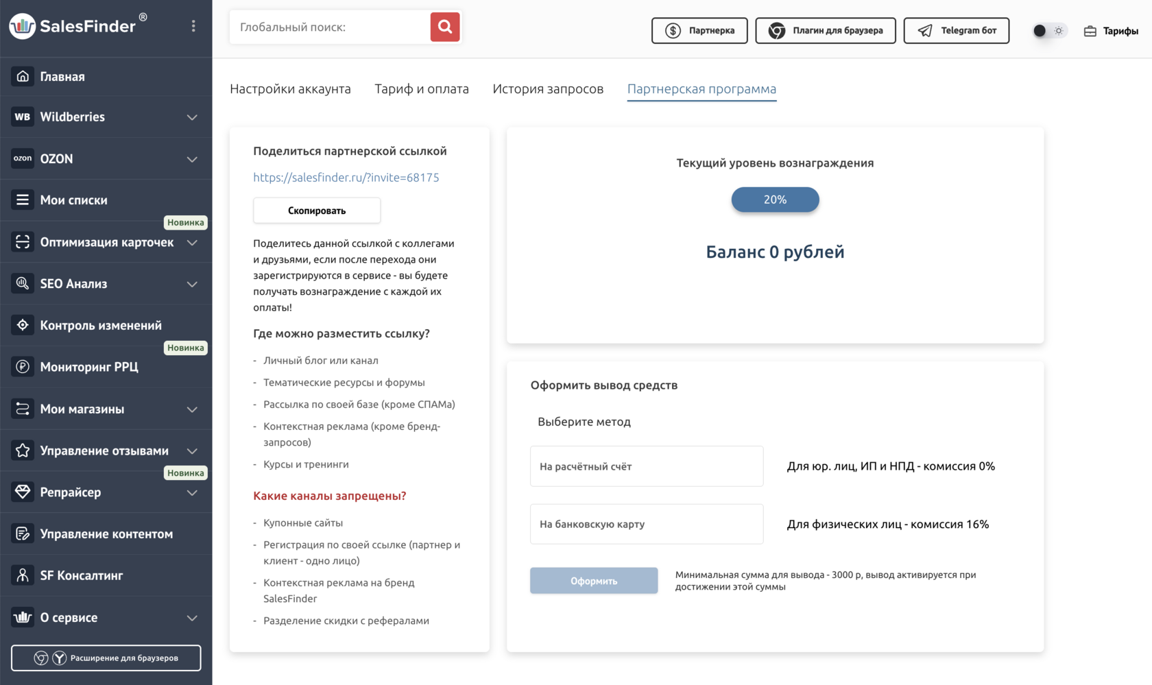 Любое физическое или юридическое лицо! Для распространения вашей партнерской ссылки разрешены следующие каналы: email-рассылки, публикации в социальных сетях и сообществах в мессенджерах, Youtube, обучающие курсы, личный или корпоративный блог, контекстная реклама (кроме таргетинга на бренд “salesfinder” в любых формах).