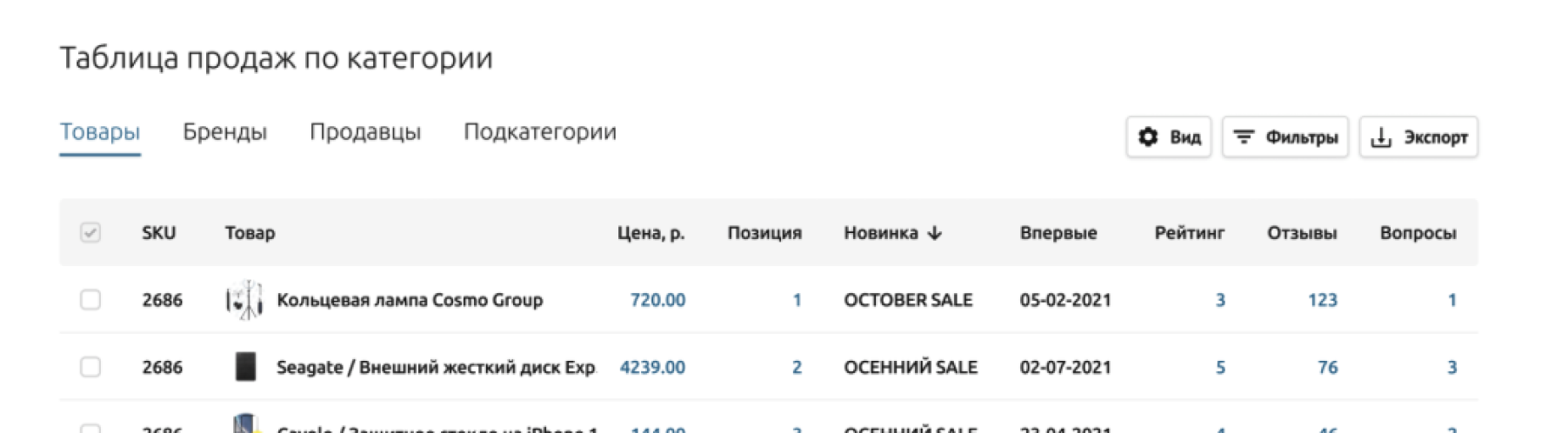 Анализируйте продажи конкурентов, ищите быстрорастущие ниши и ловите зарождающие тренды. Глубокая аналитика товаров, категорий и брендов